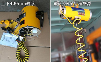 氣動(dòng)平衡器具有兩種懸浮特性(在一定范圍內(nèi)可手動(dòng)無阻力操作,定位準(zhǔn)確),一種是上下400mm的懸浮,另一種是最大3米全行程懸浮。