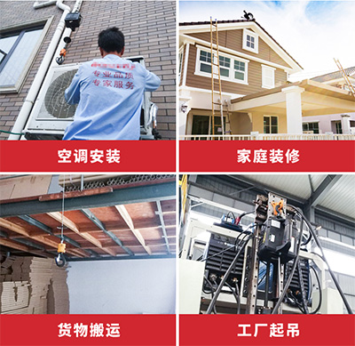 用途廣泛:空調(diào)安裝、家庭裝修、貨物搬運(yùn)、工廠起吊;