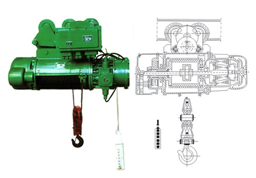 BCD型防爆鋼絲繩電動葫蘆主體可懸掛在工字梁軌道上作直線或曲線運行,或安裝在固定支架上,作為起吊重物之用。可以根據(jù)不同使用要求,同防爆單梁懸掛起重機或雙梁橋式起重機配套使用。