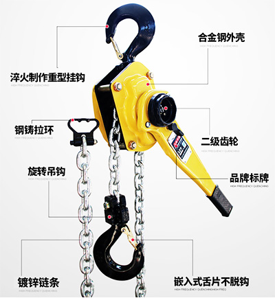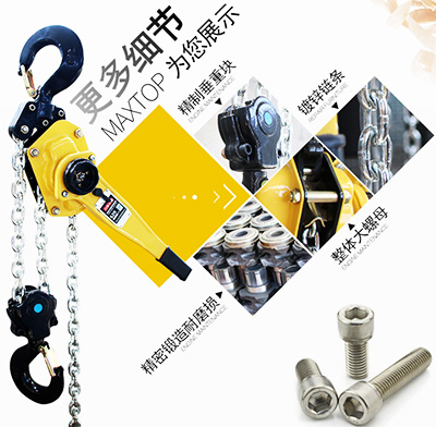 構(gòu)造優(yōu)秀,應(yīng)用可以信賴,堅(jiān)固耐用。整個(gè)設(shè)備高效率,使用方便、舒服。重量輕,重量輕,攜帶方便。所有為結(jié)構(gòu)鋼。特等的鋁合金傳動(dòng)鏈條。所有為傳動(dòng)齒輪旋轉(zhuǎn)。傳動(dòng)齒輪和軸的旋轉(zhuǎn)處常有滾動(dòng)軸承或軸套。商品表層歷經(jīng)靜電噴塑解決。技術(shù)專業(yè)的鋁合金鉤可以滿足商品的超重。商品能考慮額定值荷載的150%的凈重。